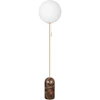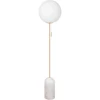 Torrano golvlampa från Globen Lighting med en modern formgivning med en vacker lampfot i sten, en rund, vit lampskärm i glas och detaljer i metall.