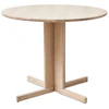 Bordet Trefoil från Form and Refine är en statementmöbel där genomtänkt design möter skulptural skönhet. Dess runda bordsskiva i massiv ek stöds av en central punkt med fritt flytande ekelement, vilket skapar en delikat balans mellan substantiell soliditet och visuell lätthet. Det öppna utrymmet mellan de bordsbenen ger en luftig elegans och en distinkt komplexitet till bordets form, samtidigt som det garanterar obehindrade sittplatser för alla. Trefoil-bordet passar perfekt för moderna hem, kontor eller hotellrum och kombinerar praktisk funktionalitet med raffinerat hantverk, vilket gör varje sammankomst till ett ögonblick av stil och komfort.