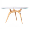 Bordet Triiio från Brdr. Krüger, ett mästerverk av den danska arkitekten Hans Bølling. Det grenliknande underredet och den nästan svävande glasskivan skapar en lugn fokuspunkt i matsalen eller köket. Perfekt för stilmedvetna individer och harmoniserar vintageelegans med en modern twist samtidigt som det erbjuder en vacker kombination av konstfull design och funktion.
