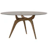 Bordet Triiio från Brdr. Krüger, ett mästerverk av den danska arkitekten Hans Bølling. Det grenliknande underredet och den nästan svävande glasskivan skapar en lugn fokuspunkt i matsalen eller köket. Perfekt för stilmedvetna individer och harmoniserar vintageelegans med en modern twist samtidigt som det erbjuder en vacker kombination av konstfull design och funktion.