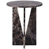 V är ett sidobord från Dusty Deco i vacker marmor med en unik estetik som utstrålar elegans och lyx.