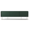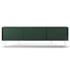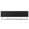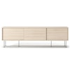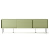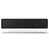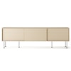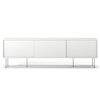 Vogue mediabänk från Decotique med en modern design och ett lyxigt uttryck för alla hem och stilar. Den har tre skjutdörrar i samma färg och sex smala ben för ett exklusivt intryck. Tre sektioner med ett flyttbart hyllplan i varje sektion för att kunna anpassa efter smak och behov och tre hål baktill för sladdar och kablar. Välj mellan olika färger och material.