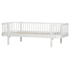 Wood Dagbädd är en stilren säng med en touch av 50-tal. Sängen blir en perfekt soffa att sitta i på dagen med lite kuddar i ryggen men kan också fungera som säng på natten. En toppensoffa för sommarstället med andra ord. Den finns i två utföranden: Vit eller Vit/ Ek.