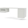 Workshop skrivbord från Montana med en stilren, funktionell design perfekt för det moderna hemmakontoret. Det är vägghängt och gjort av lackad MDF och har tre avtagbara brickor på ena sidan och ett rymligt skåp på andra sidan. En praktisk design som ger mer utrymme för benen.